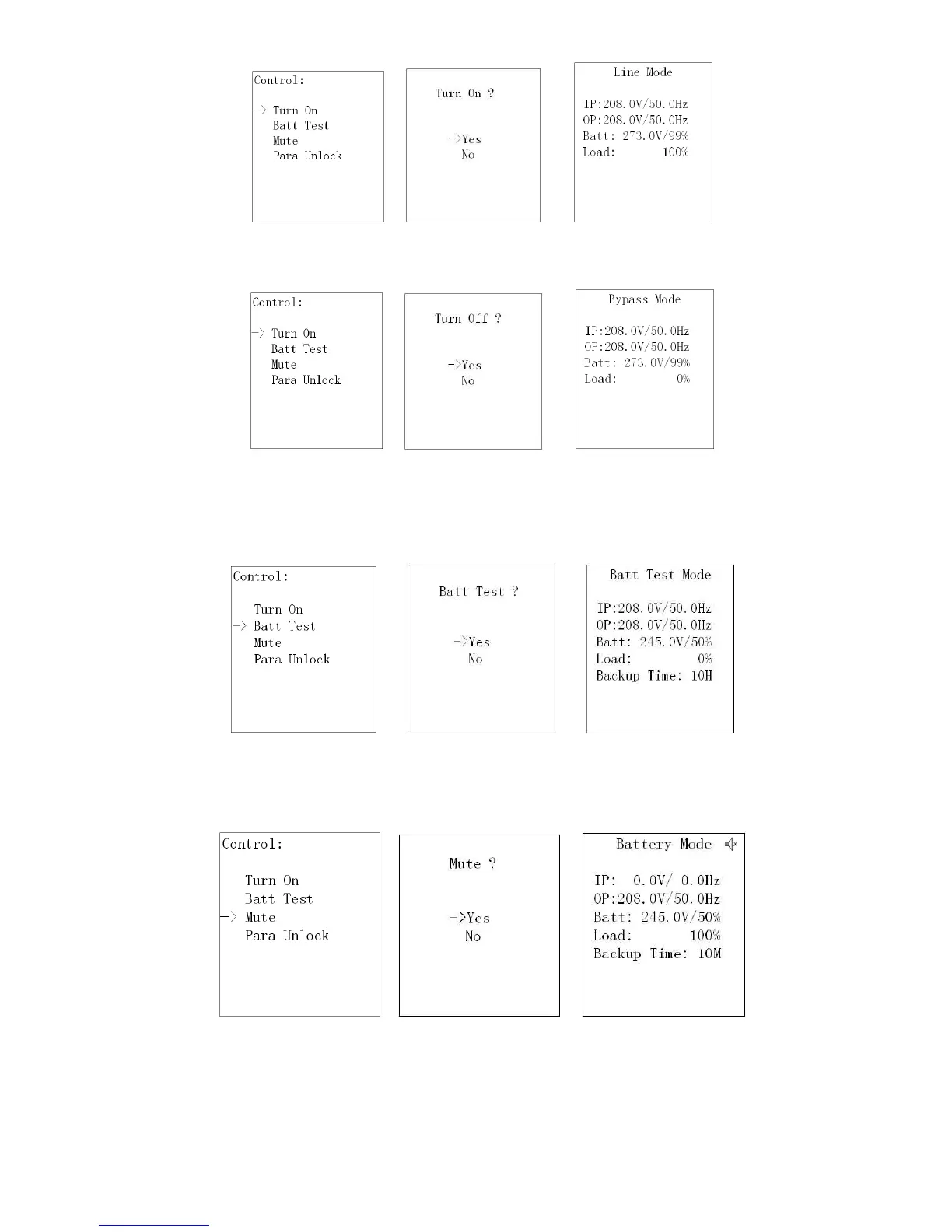 control. Si se selecciona y se confirma esta acción, el UPS pasará a modo Bypass o apagado.