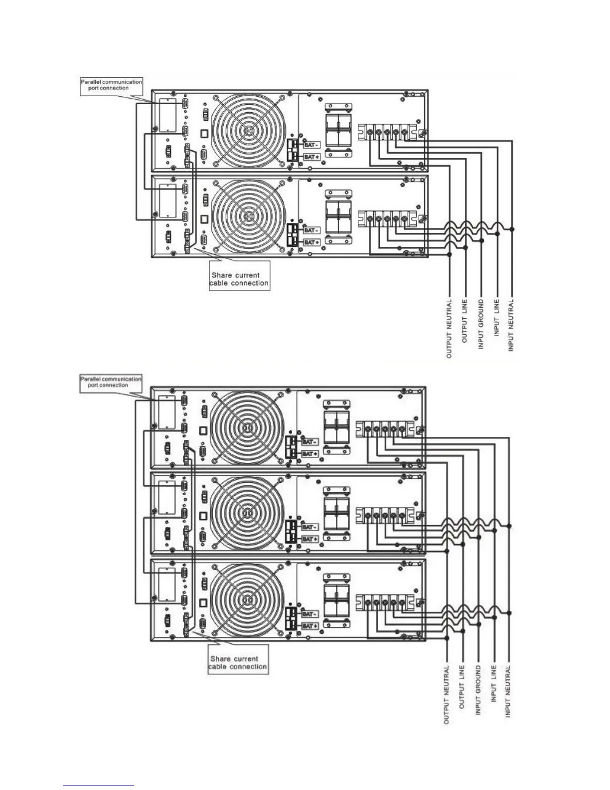 1) Cableado del sistema en paralelo del UPS de acuerdo a los siguientes esquemas: