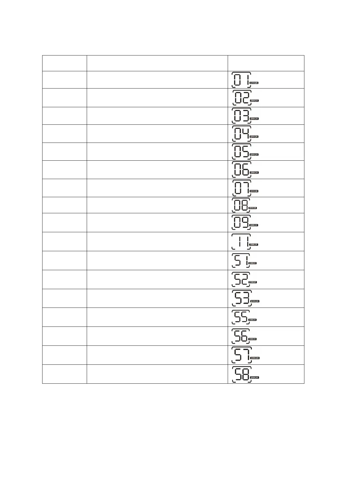 Note : les codes 51, 52, 53, 55, 56, 57 et 58 concernent les C2 Nomad Combo 4000 et 5000 VA