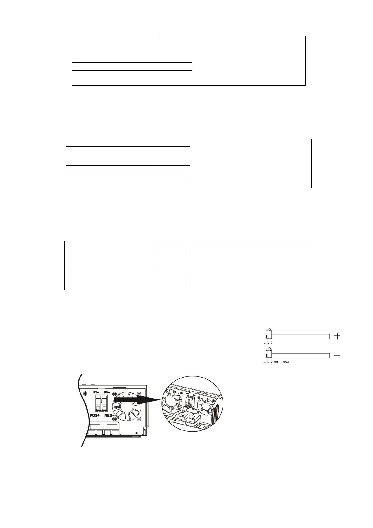 pole (+) of PV input connector. Connect negative pole (-) of connection