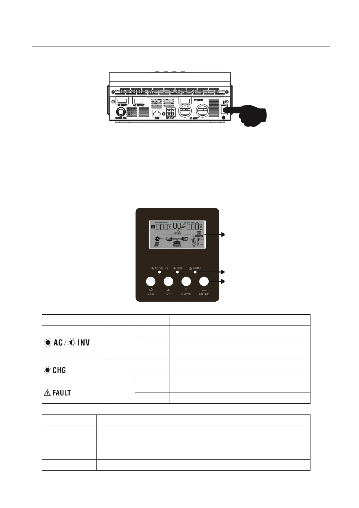 The operation and display panel, shown in the table below, is on the front panel of the inverter. It includes