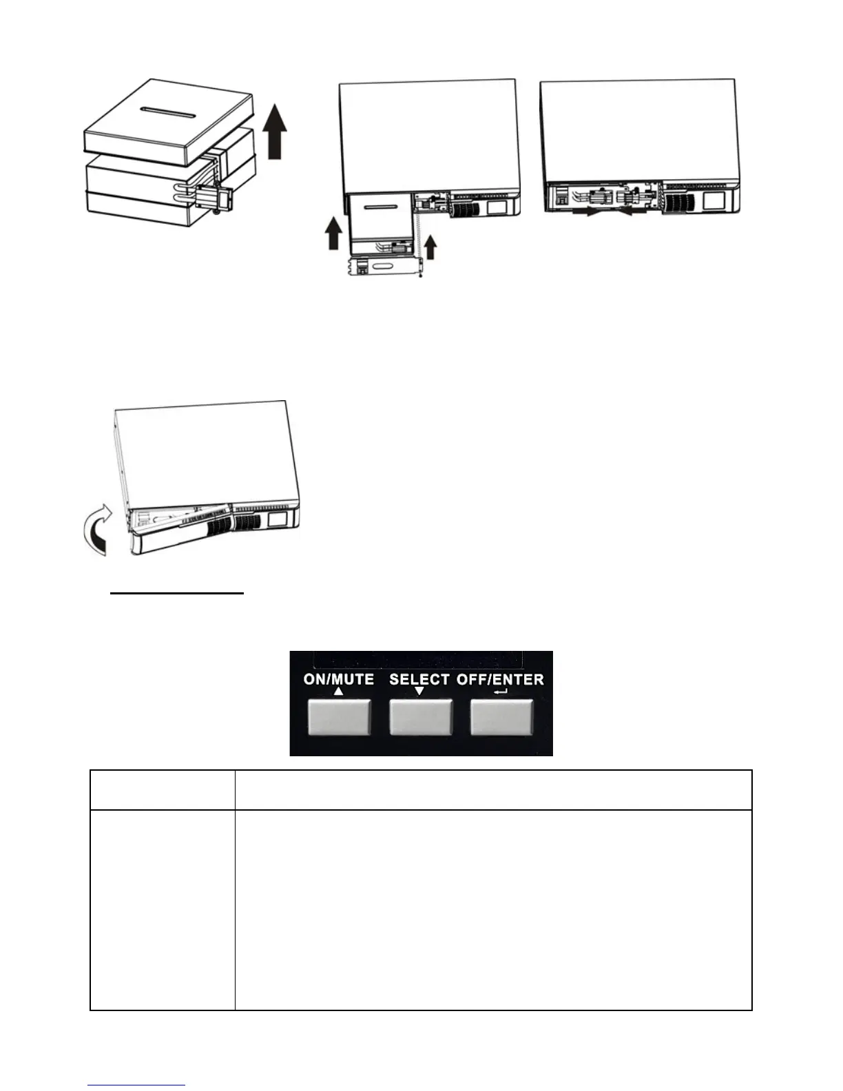 Mise en marche de l'onduleur : Appuyer sur le bouton ON/MUTE