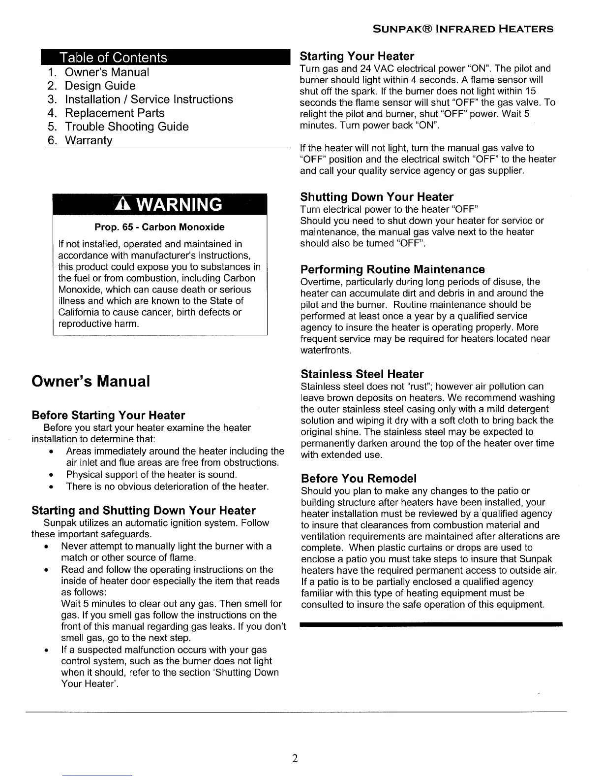 Infrared Dynamics Sunpak S34 - Owners Manual: Operation and Checks; Before Starting Your Heater