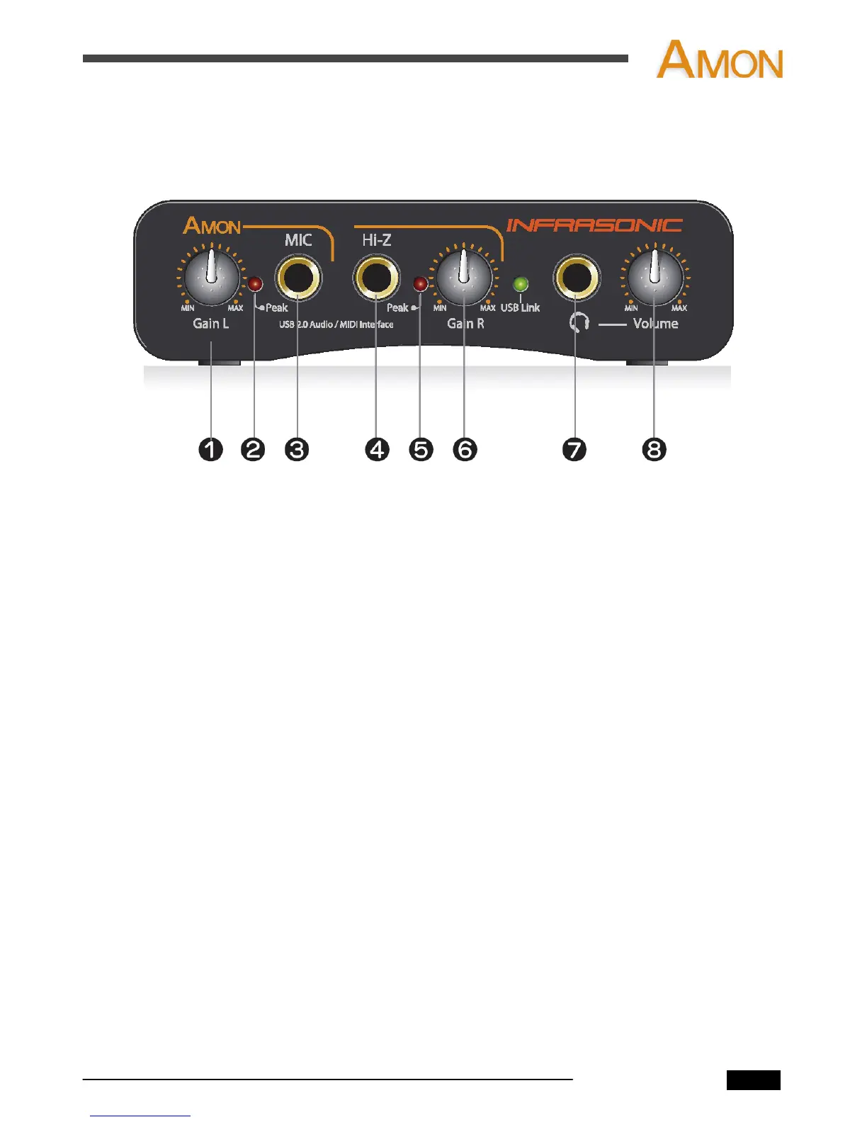 - This knob adjusts the right Line and Hi-Z Input gain.