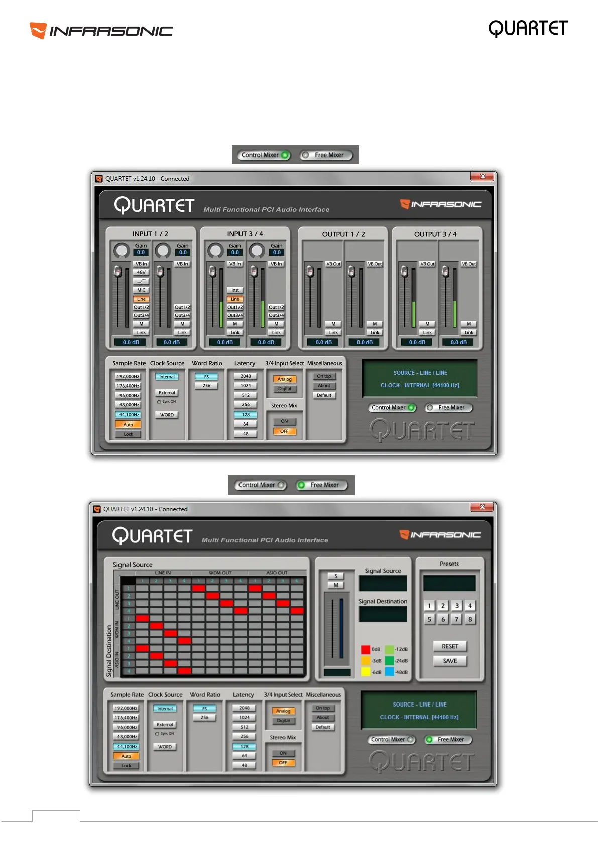 Infrasonic QUARTET - QUARTET Control Panel Overview; QUARTET Control Mixer Interface