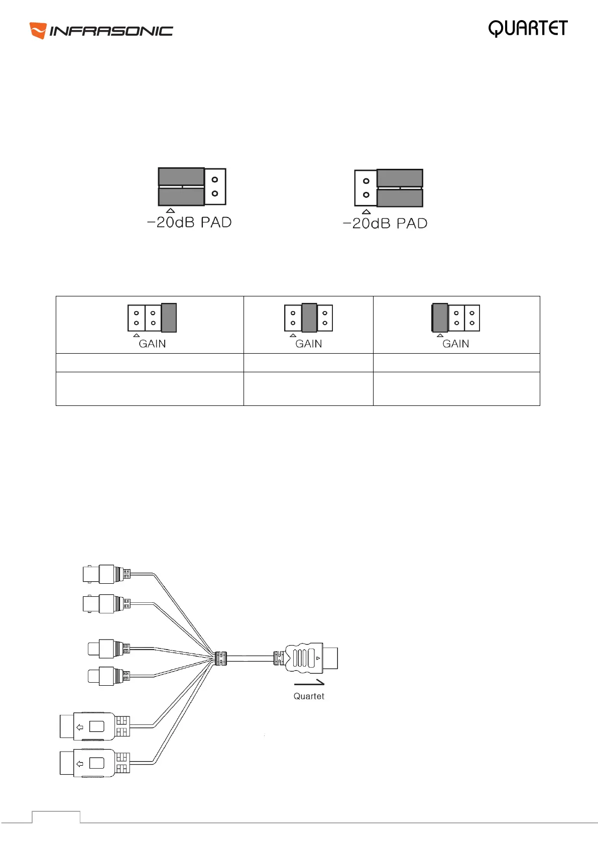 level by -20dB. This way QUARTET provides +20 dB headroom for higher input levels and