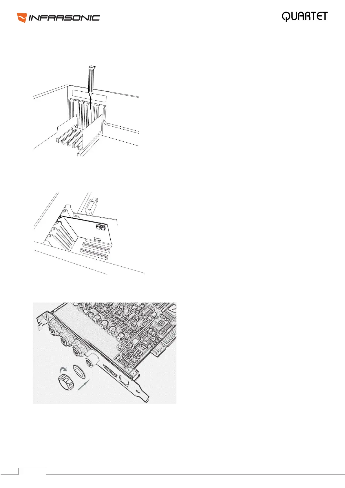 QUARTET card into the PCI slot, firmly pushing the card into the slot until it is seated