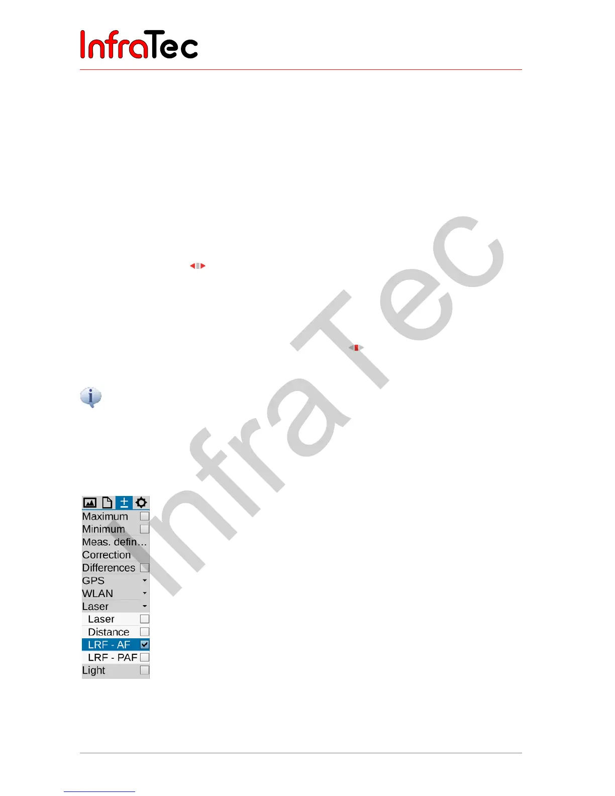 selectable. Please select the function LRF- AF from the menu Measurement for this purpose.