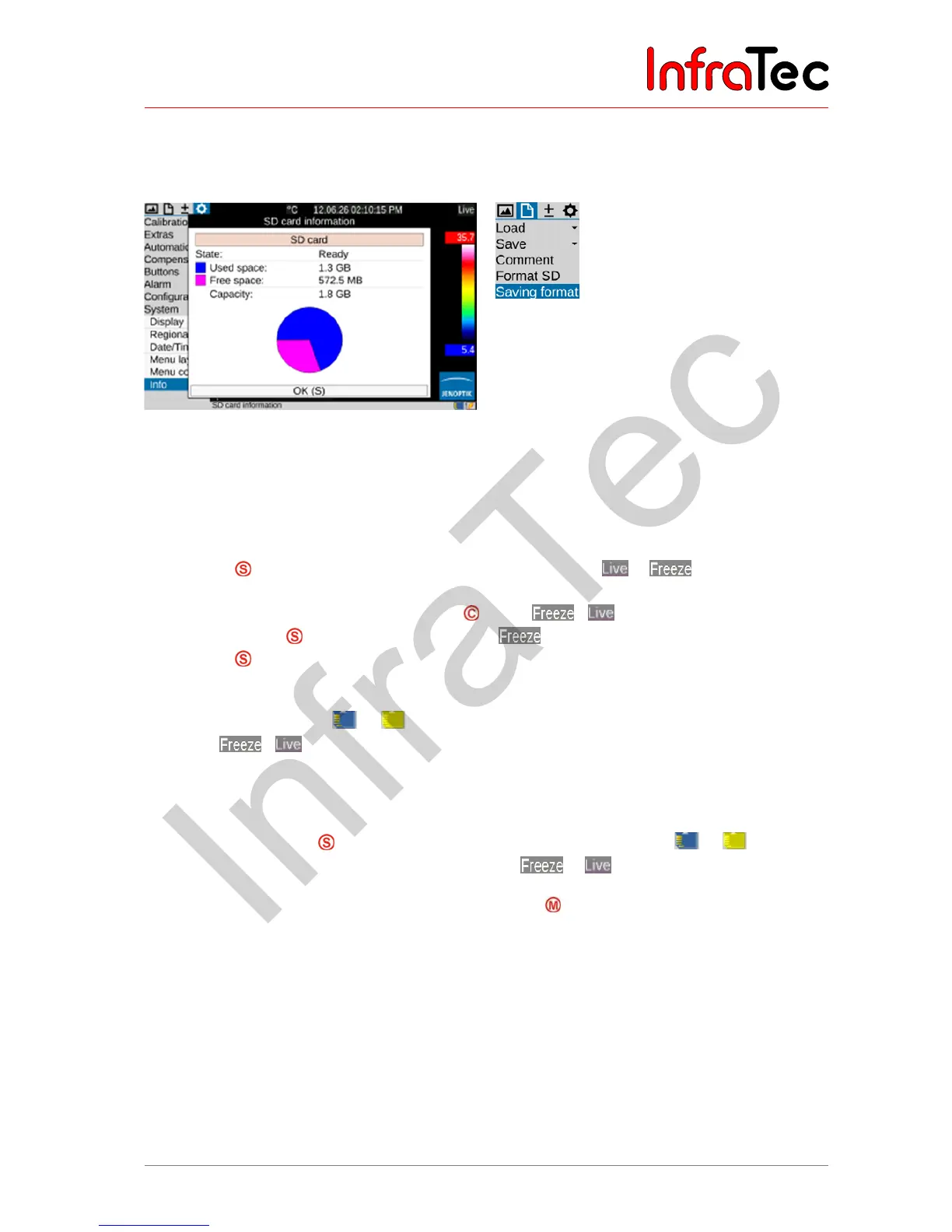 Fig. 31 SD card status indication Fig. 32 Menu item “Saving format”