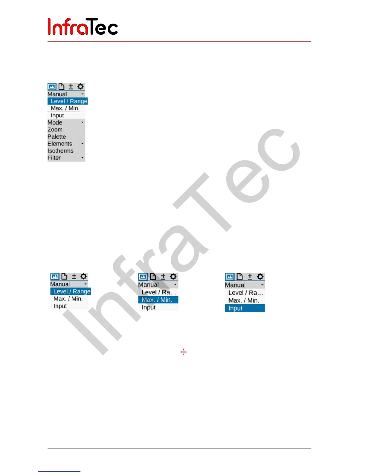 the thermal image instead of the menu after opening the function. The respective input dialog for
