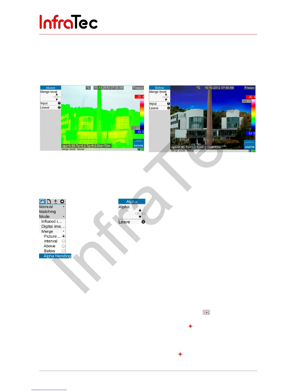 areas above, and for the Below option, all areas below the adjustable temperature limit are displayed.