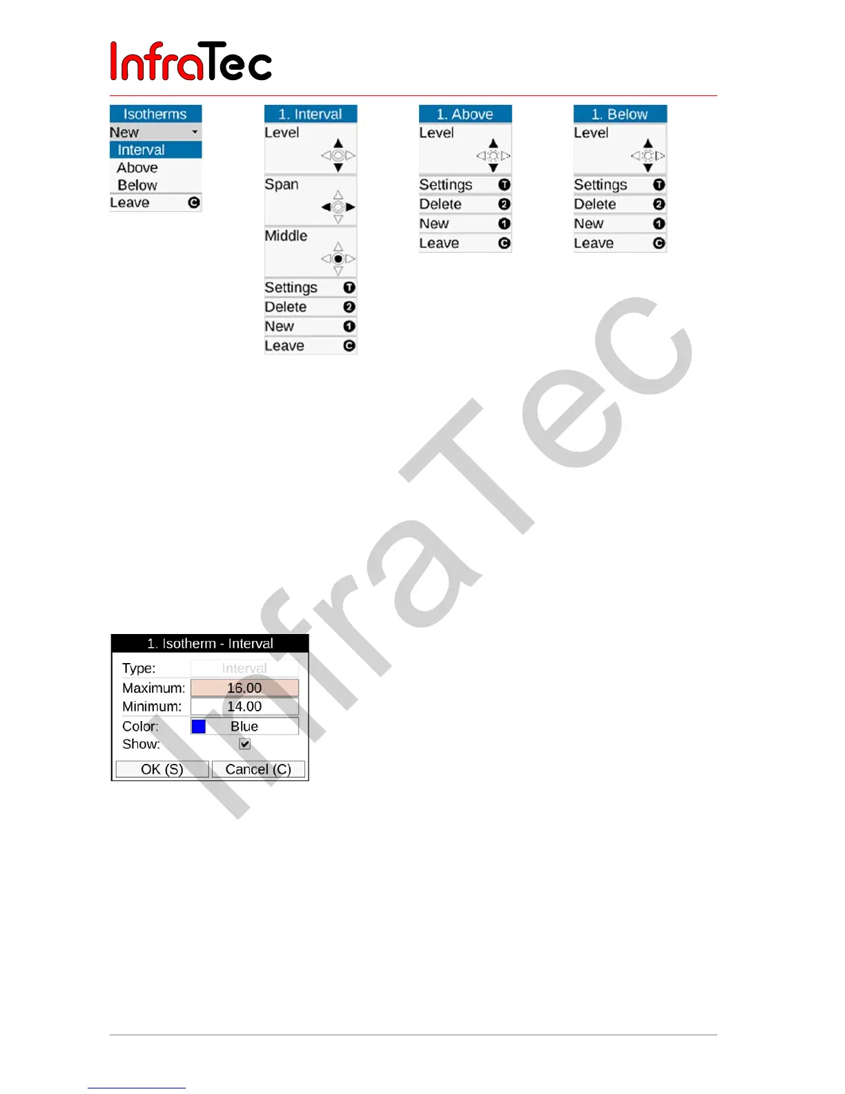 isotherms settings need to be used again later, you can save the configuration (9.4.7 Menu item
