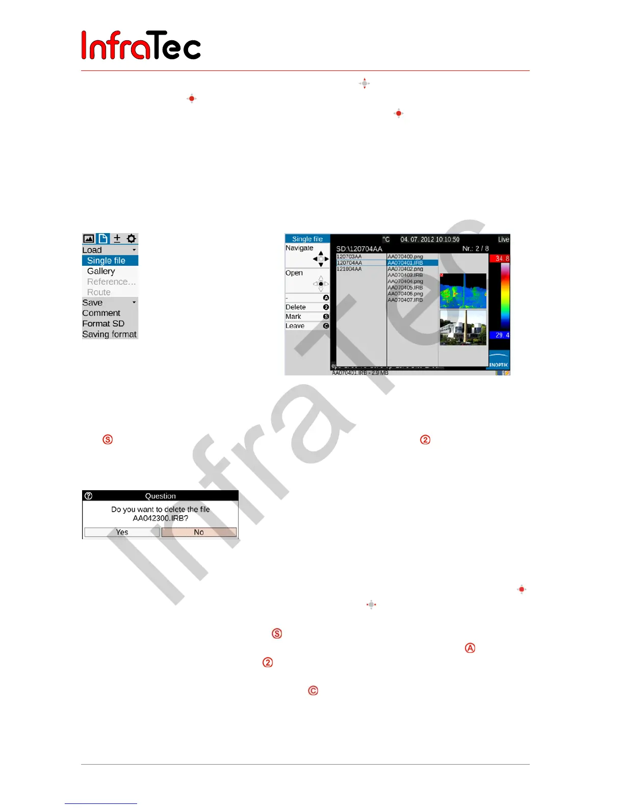 and/or previous image in the file list. If a photo is saved in the IRB, this photo is shown as a miniature