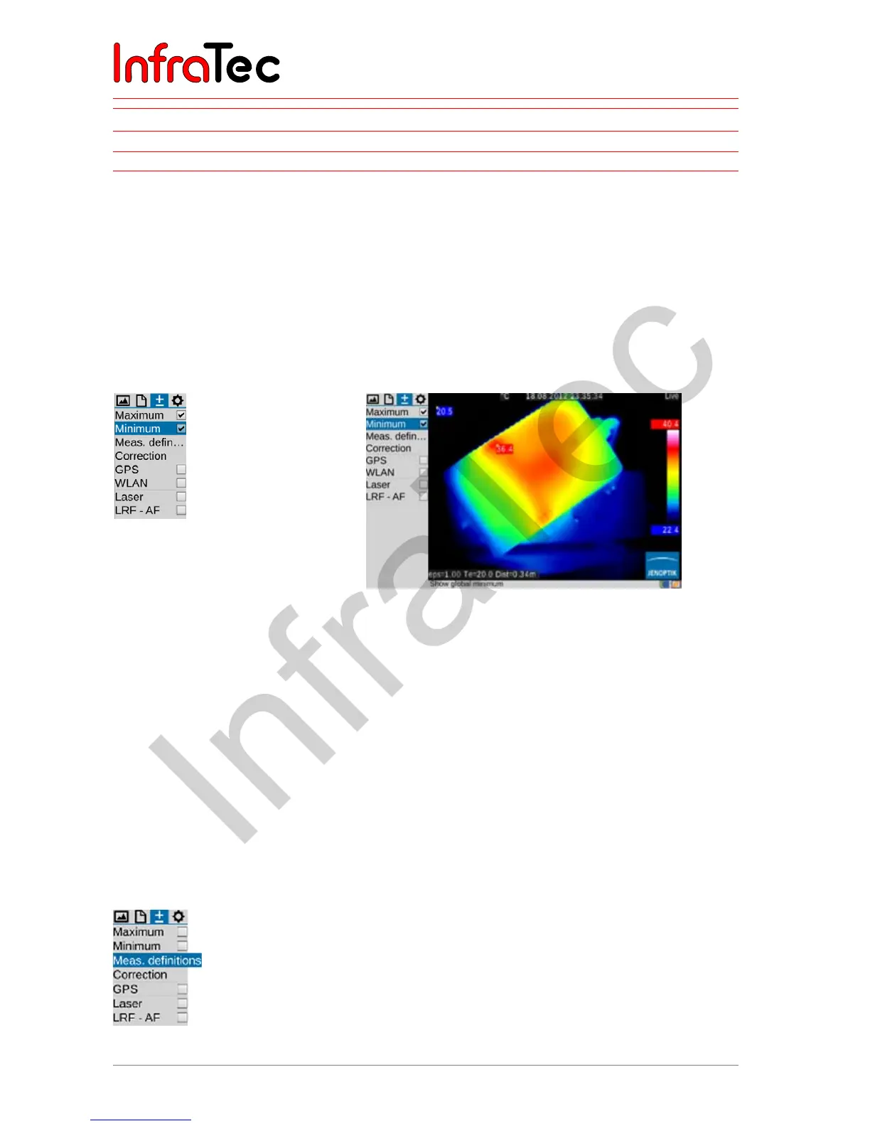 thermal image by selecting the options "Maximum" and "Minimum". Position and value are consistently