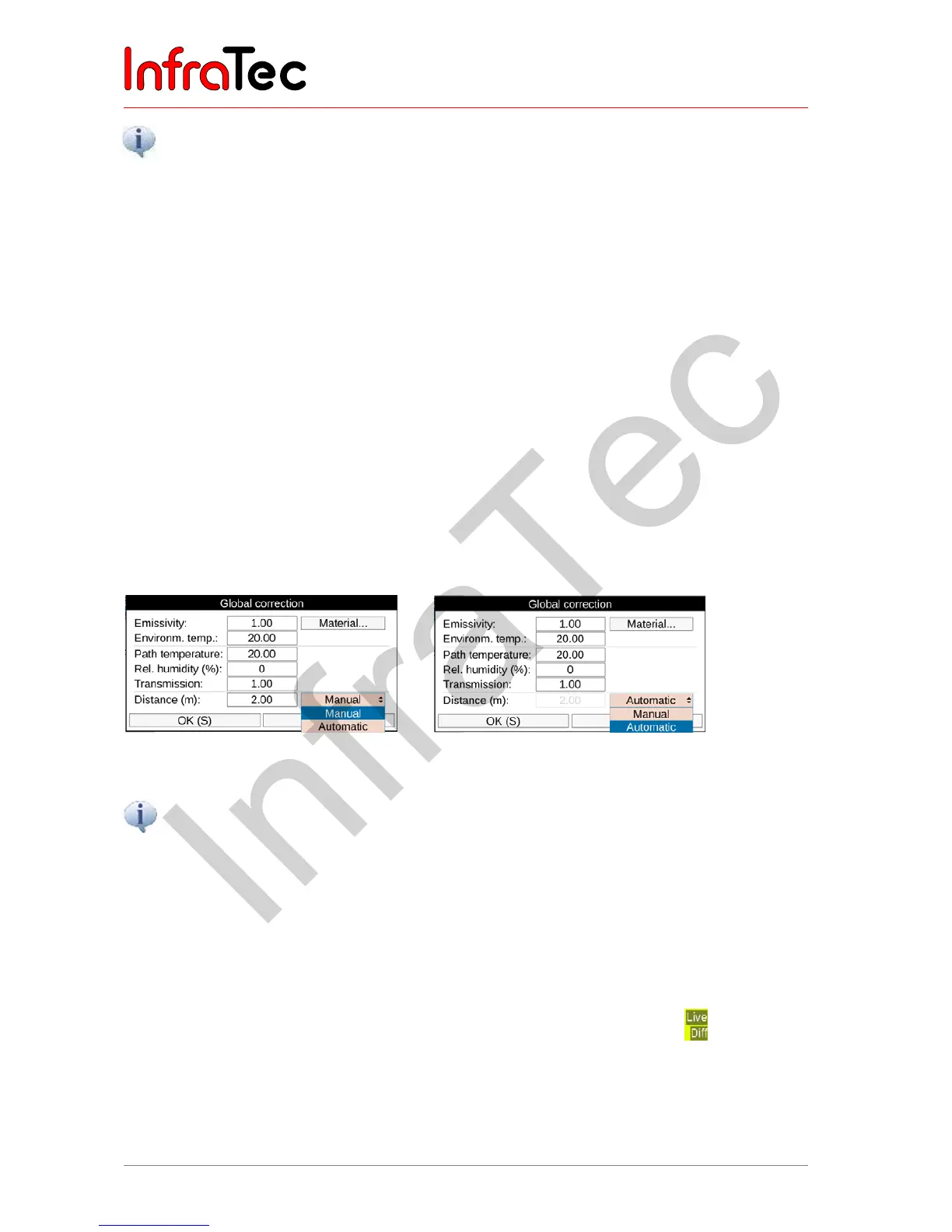 the correction parameters is only saved within the thermogram. This is suitable in the event of stationary