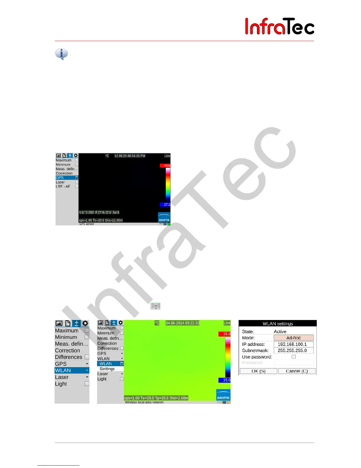 the Jenoptik logo as a symbol. When the GPS receiver is activated, the display of the GPS data (latitude,