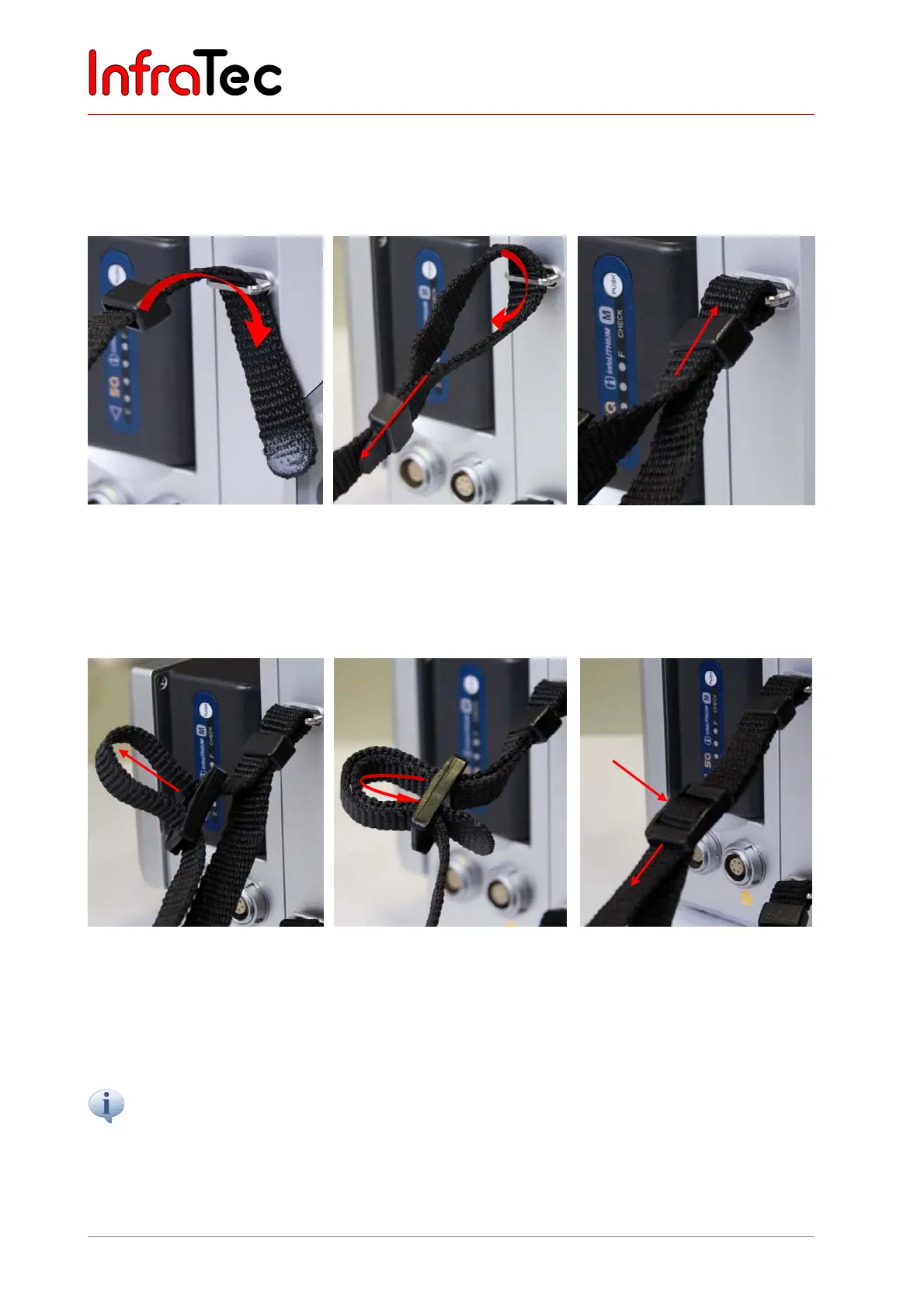 The loose end of the strap should always show ≥ 5 cm beyond the fastener!