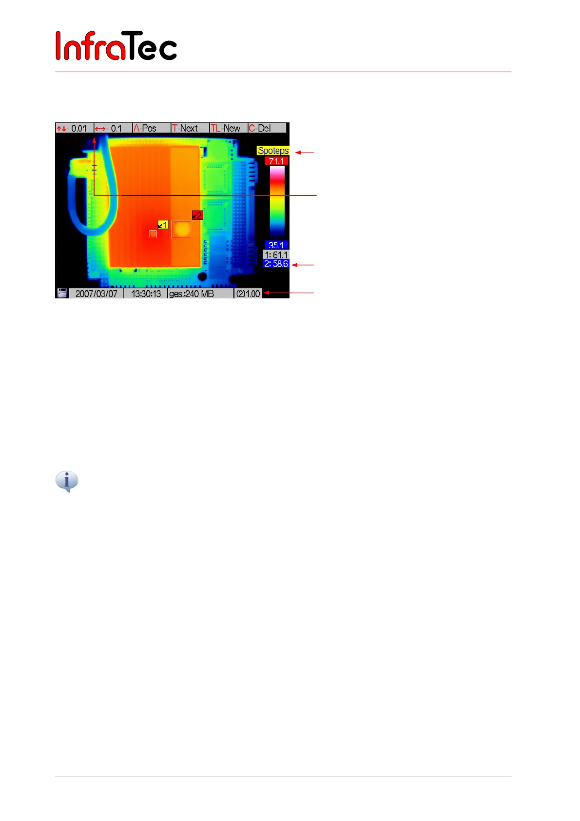 In the "Spoteps" status, the emissivity of a measuring area can be changed from 0.01 to 1.00.