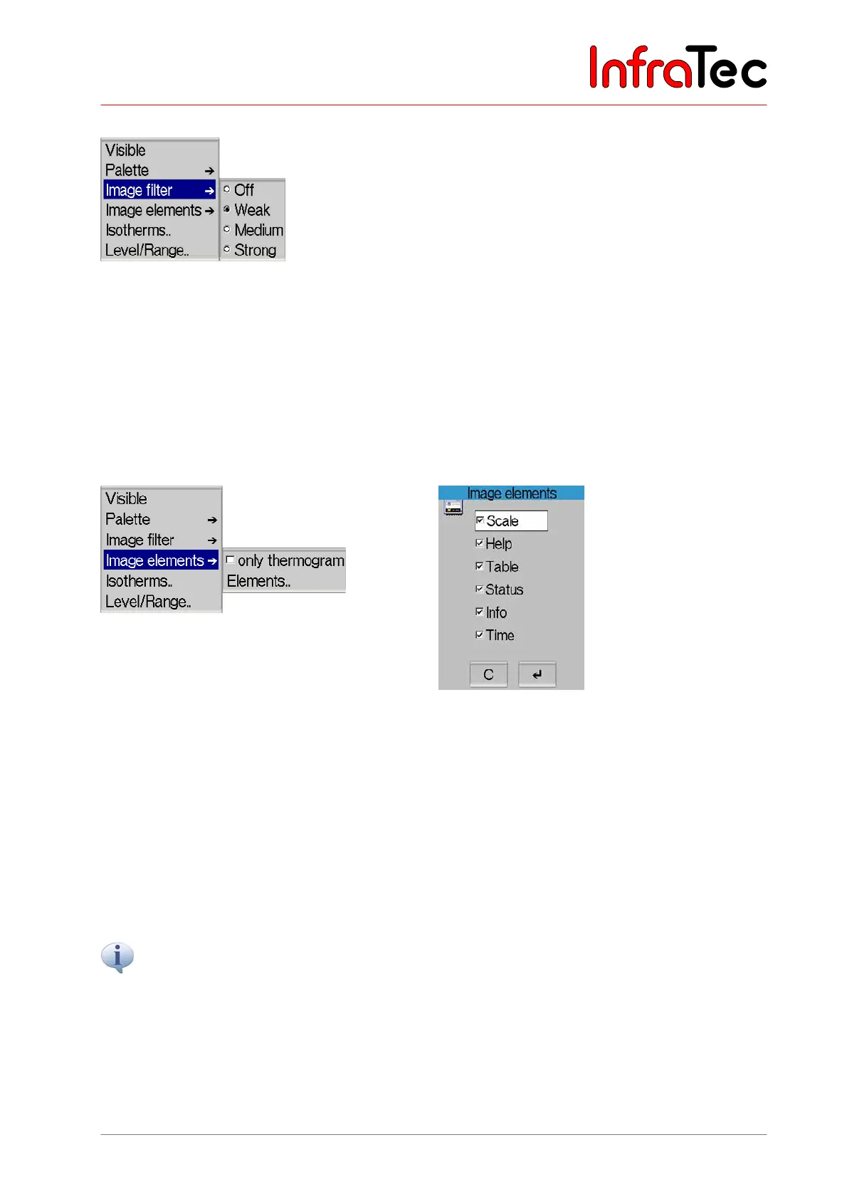 Using the menu item "Image filter", a filter for the presentation of thermal images can be adjusted. As a