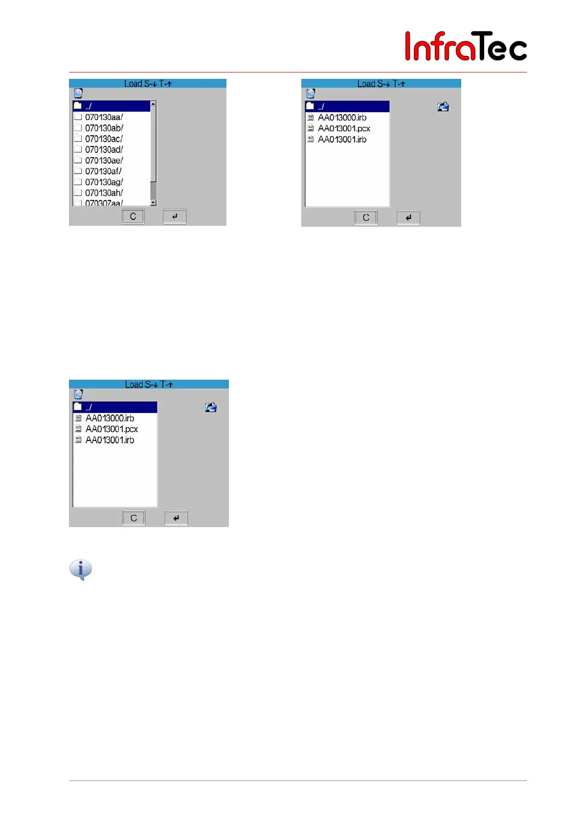 (see Fig. 73). The respective directory and the file to be loaded are selected by using the joystick buttons