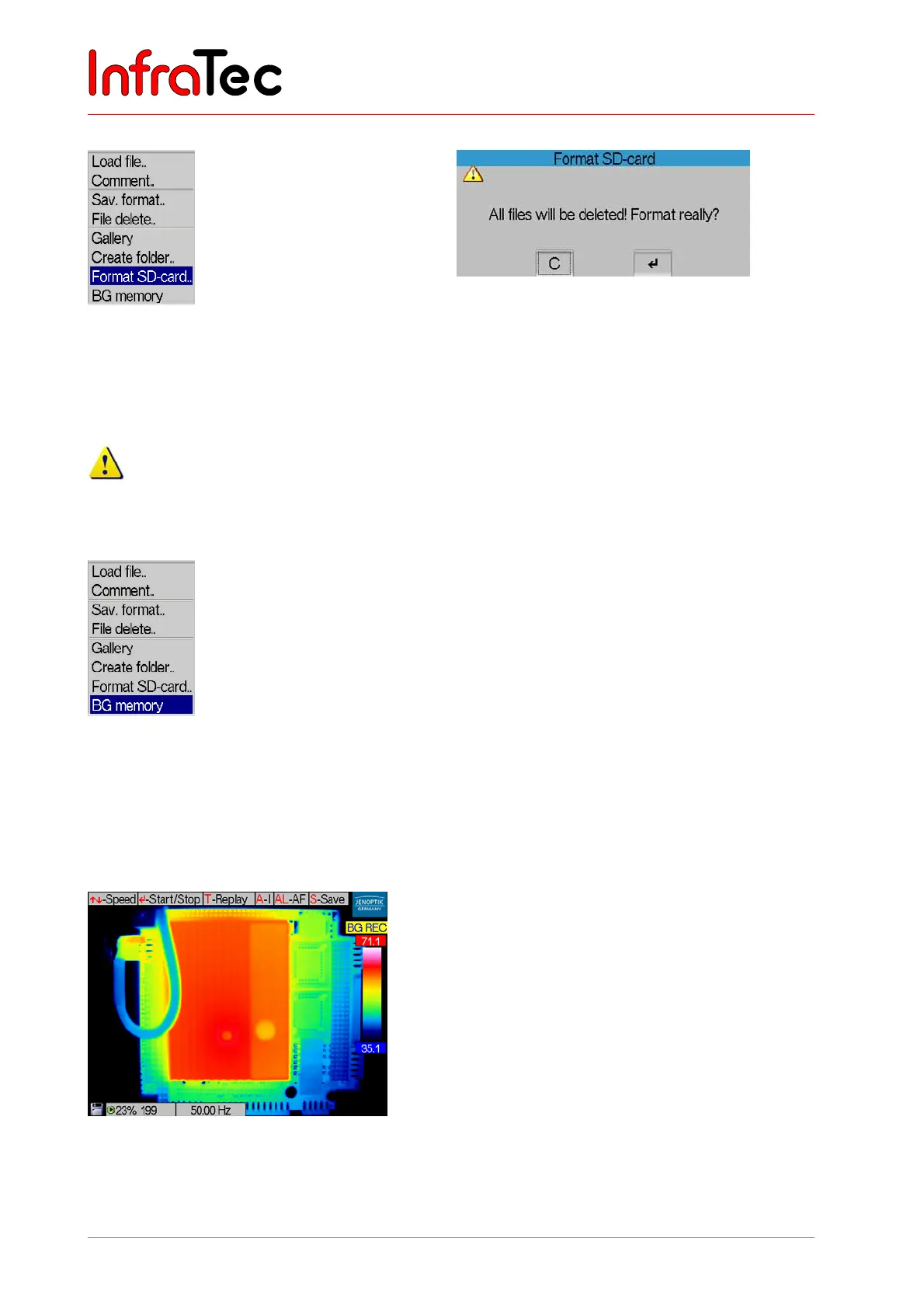 After selecting “Format SD-card”, a dialogue will appear that needs to be confirmed by Enter in order to