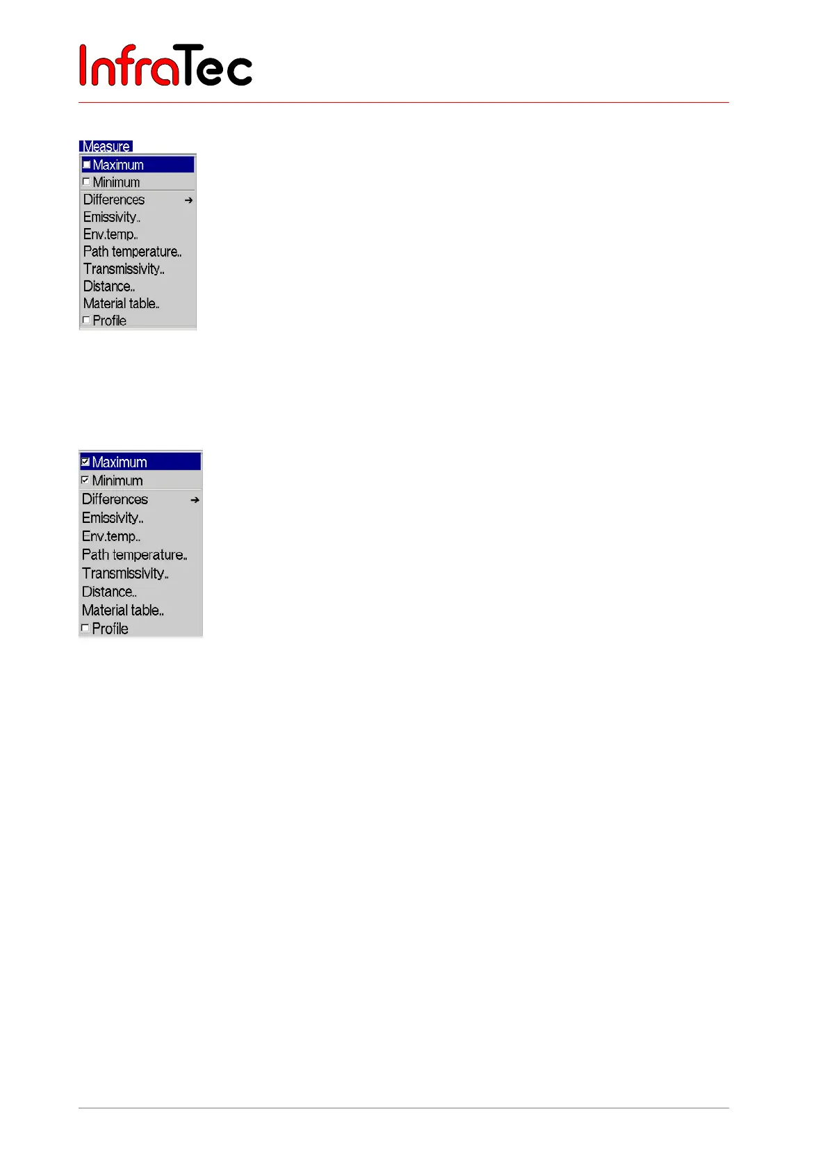 The menu “Measure” contains all the functions regarding temperature measurement. The menu