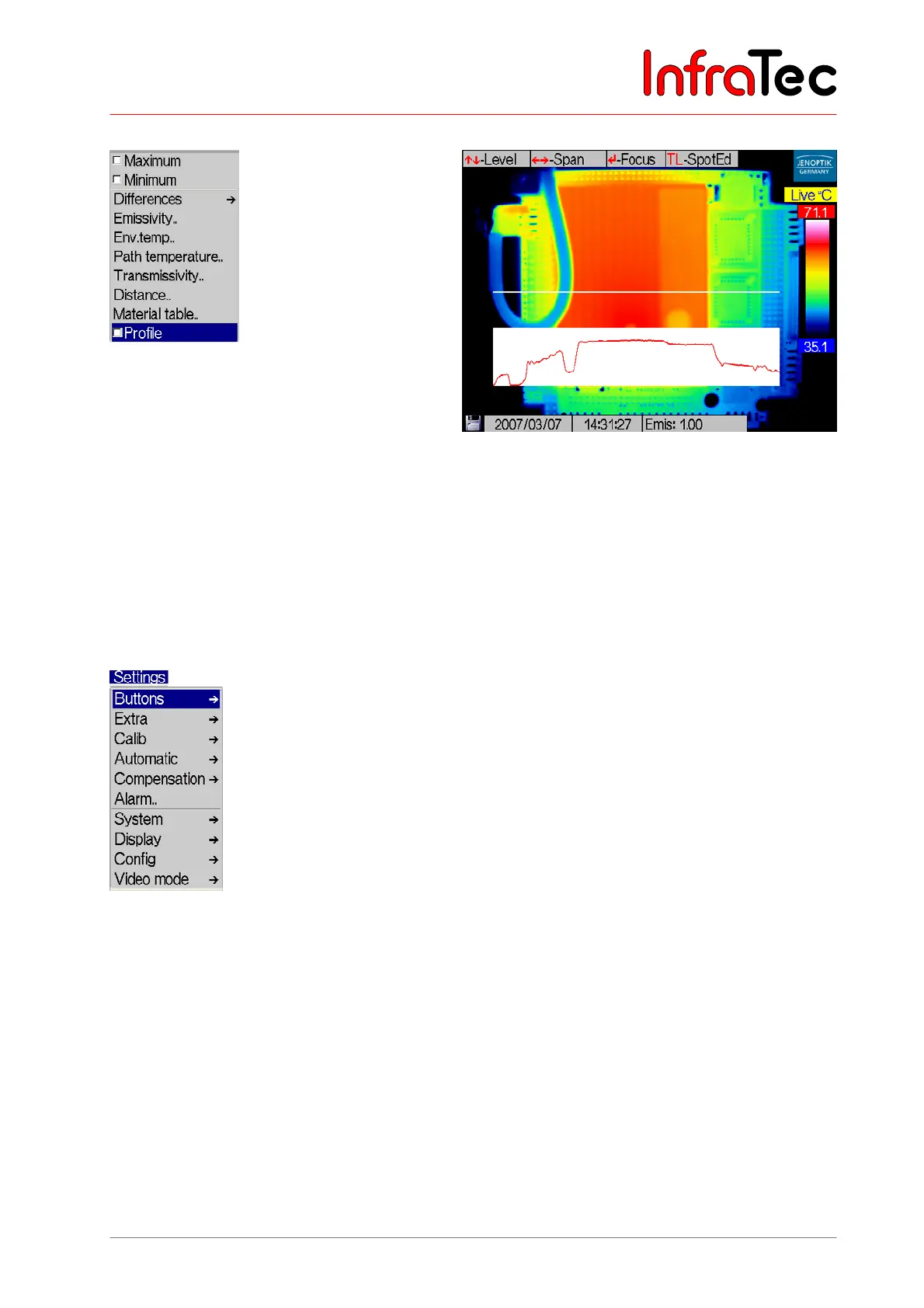 horizontally across the thermal image (see Fig. 112). The displayed temperature profile is scaled