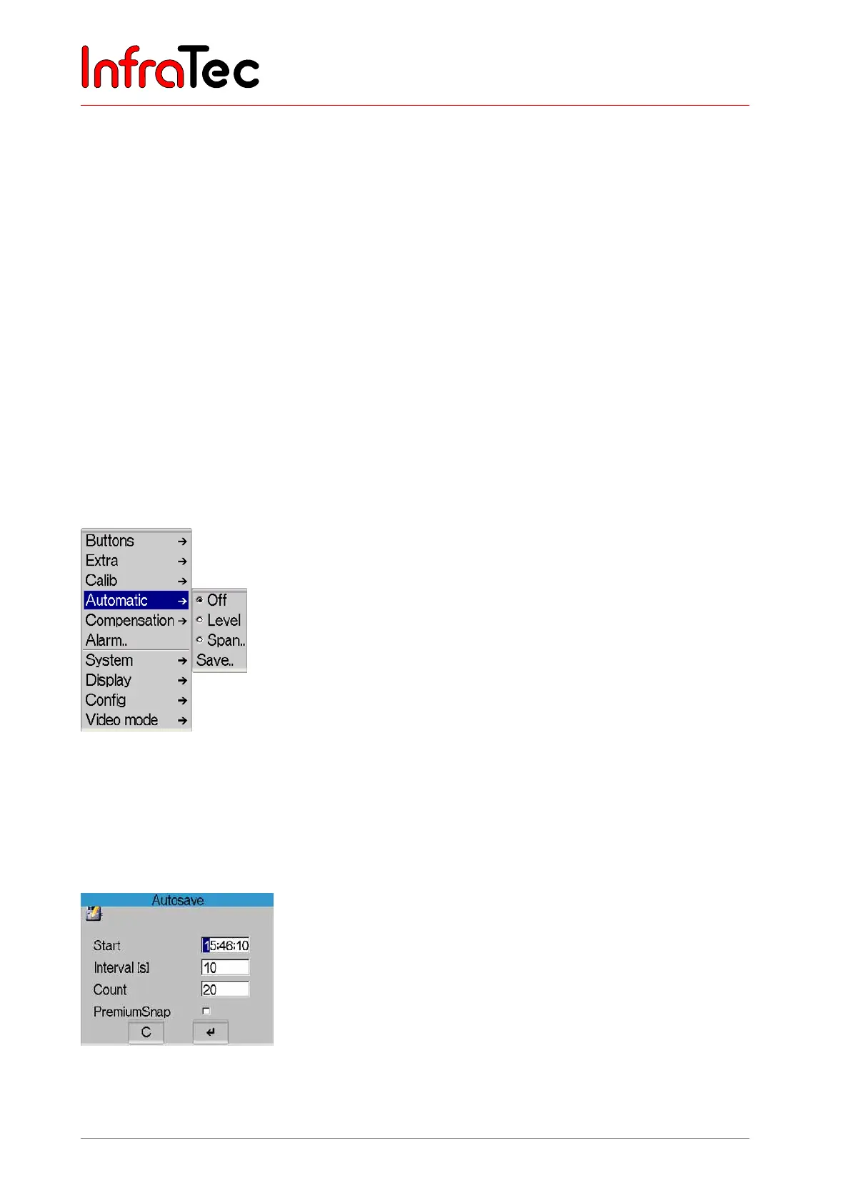 Items "Level" or "Range", respectively, serve the automatic adjustment of the thermal image with