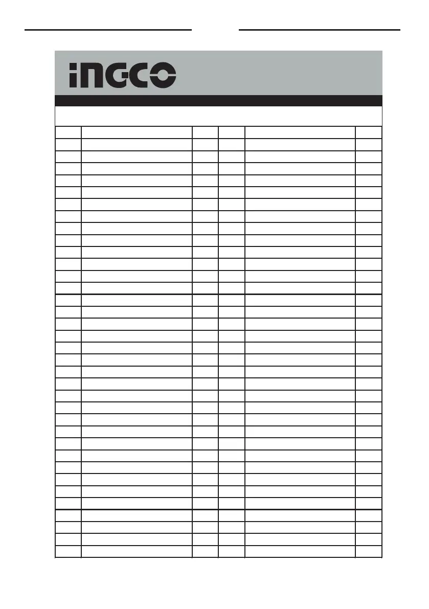 NO. Part Description Qty NO. Part Description Qty