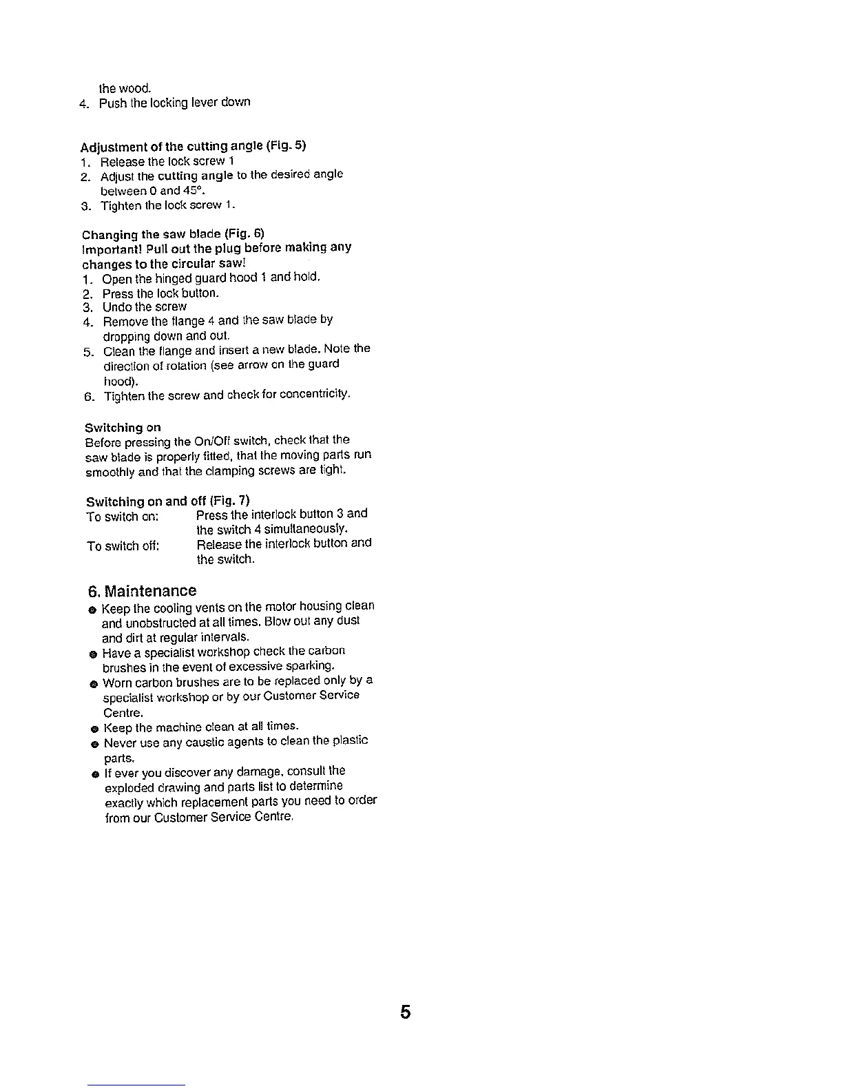 Ingco CS1858 - Adjusting Cutting Angle; Changing the Saw Blade; Switching On and Off; Maintenance