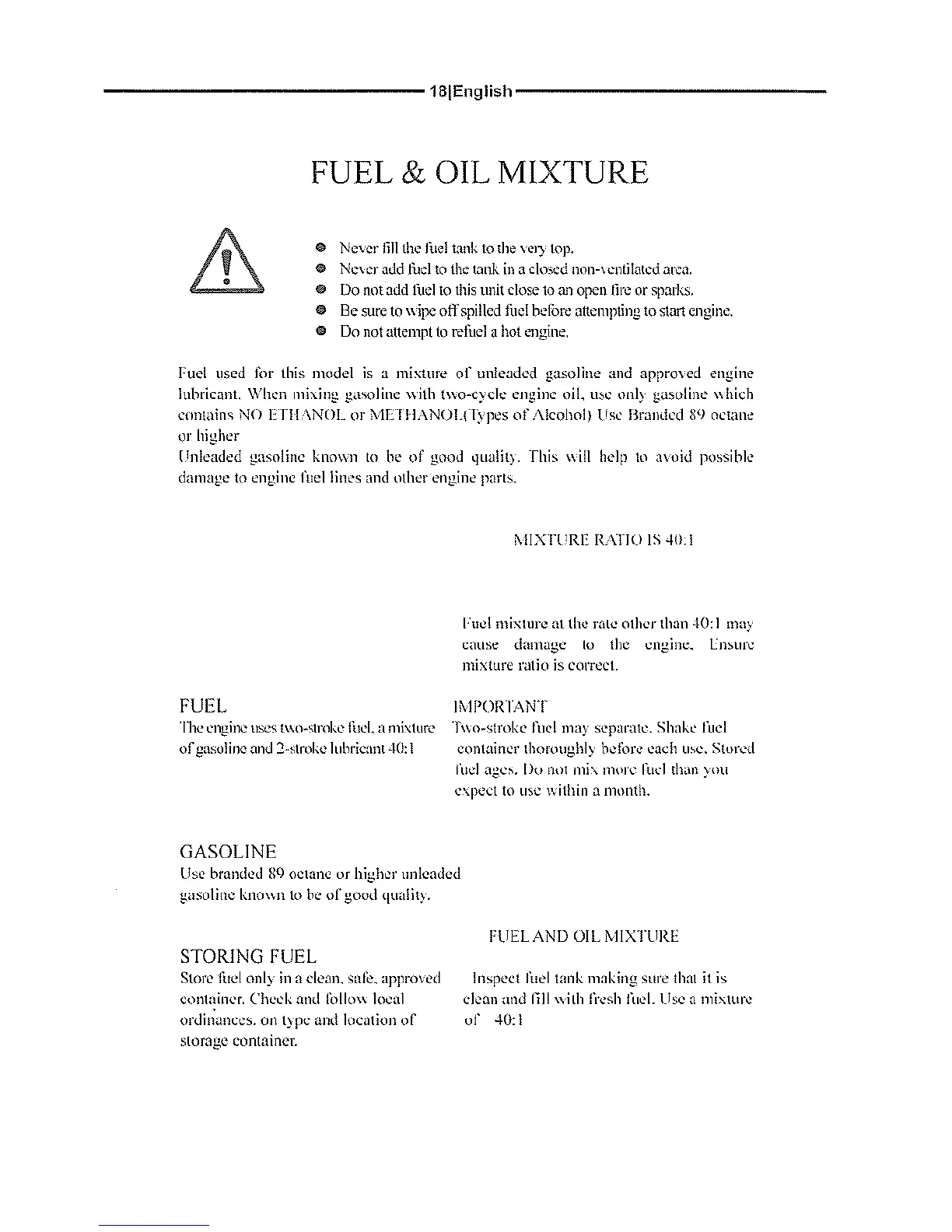 Ingco GBC45441 - FUEL & OIL MIXTURE; GASOLINE
