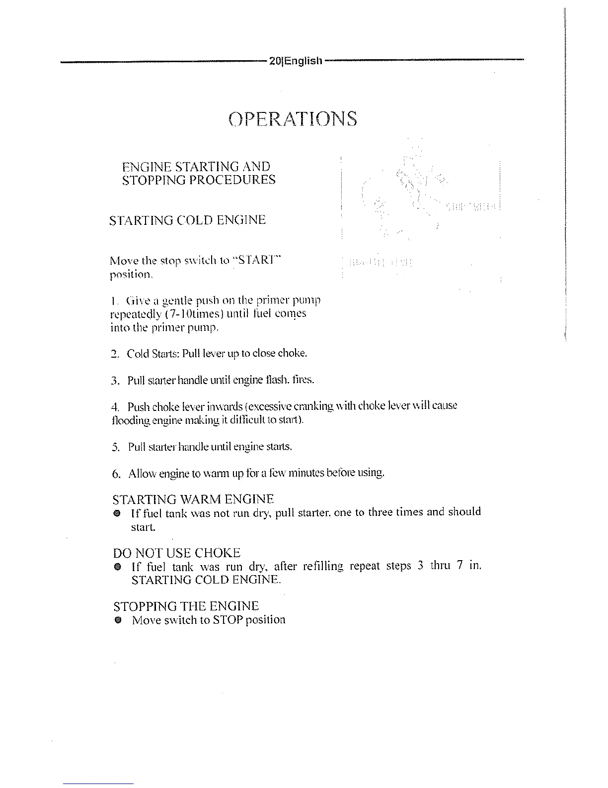 Ingco GBC45441 - OPERATIONS; STARTING COLD ENGINE; STARTING WARM ENGINE; STOPPING THE ENGINE