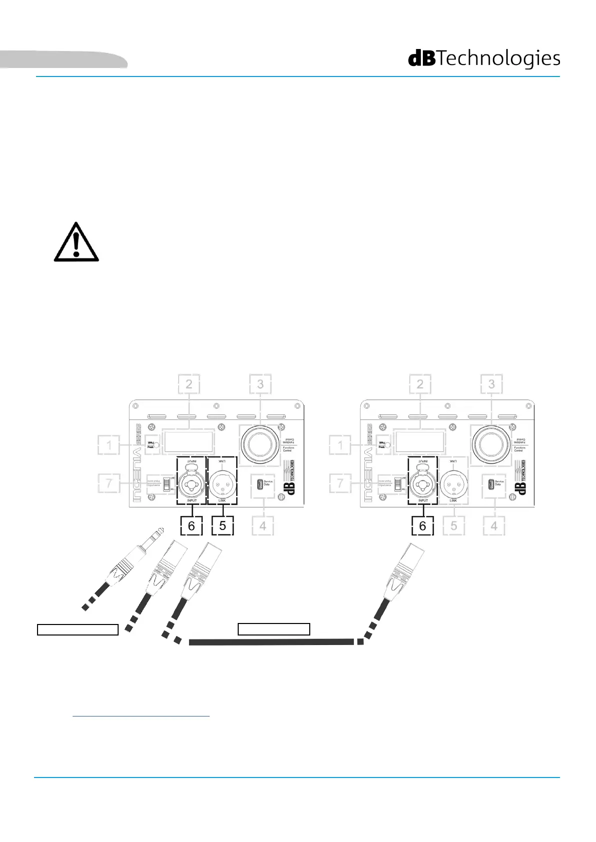 sección CONEXIÓN DE LAS ENTRADAS). Luego conectar con un cable equilibrado XLR la salida “LINK” (5) del