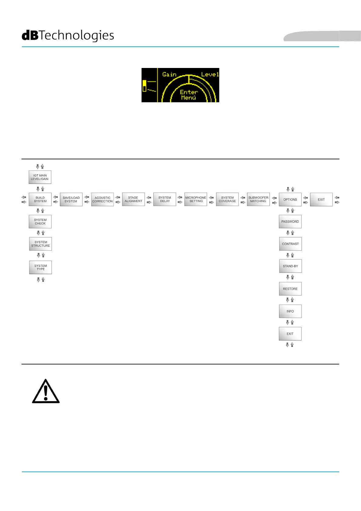 Desde esta pantalla, pulsando el rotary push encoder, se accede a los diferentes menús, cuya estructural general