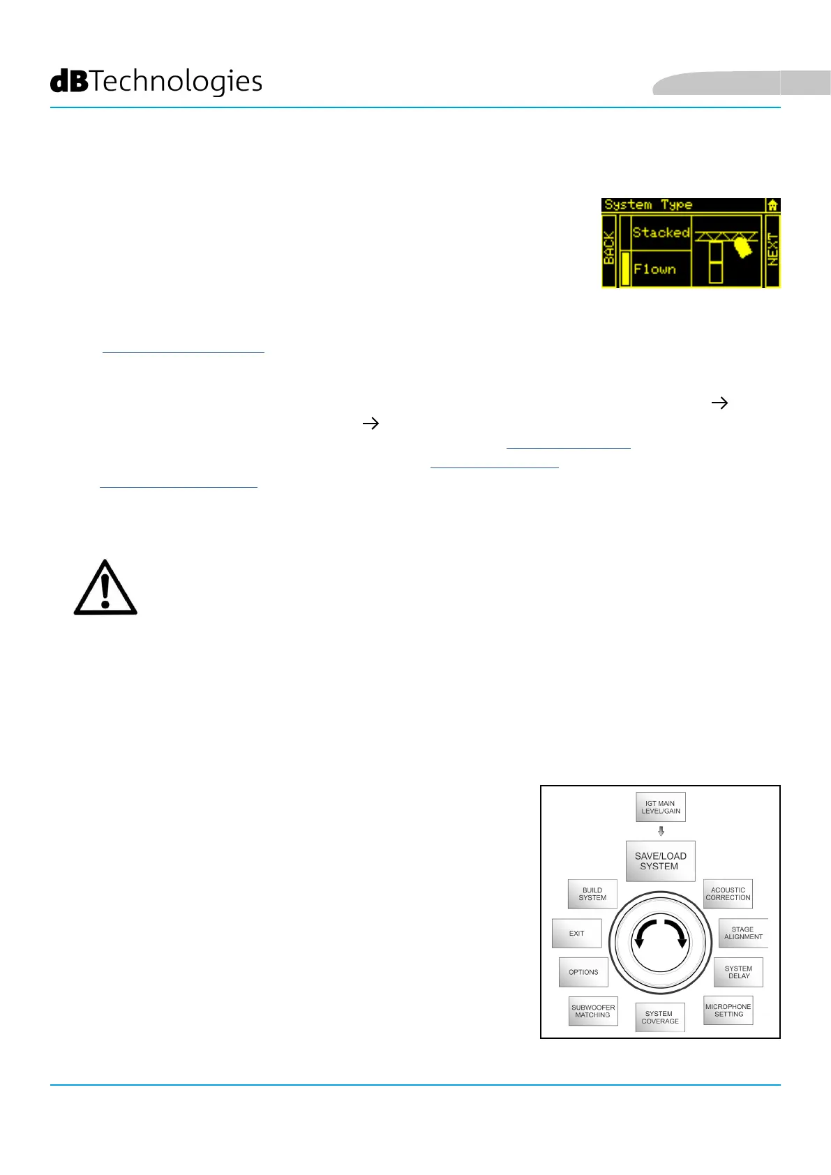 • Select and conrm the desired mode, choosing between “Stacked” and “Flown”; select and conrm NEXT