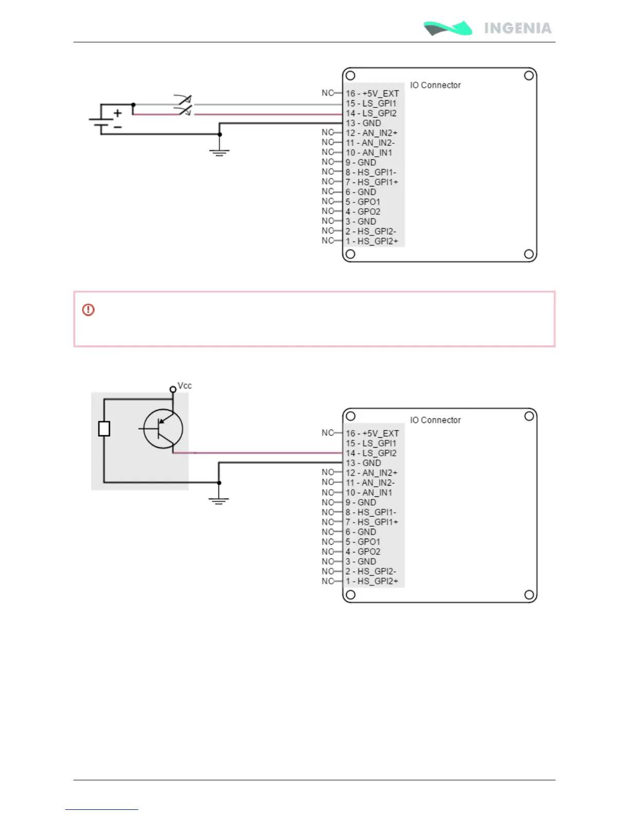 Three-wire sensors can also be connected to Pluto Servo Drive LS inputs. Next figures illustrate how to do