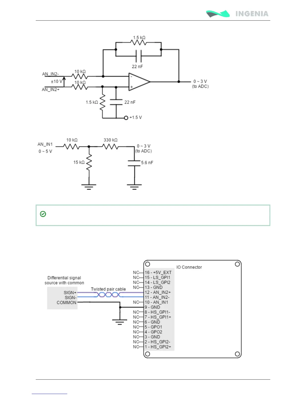 Next figure shows how to interface voltage sources to the differential analog input 2. The differential