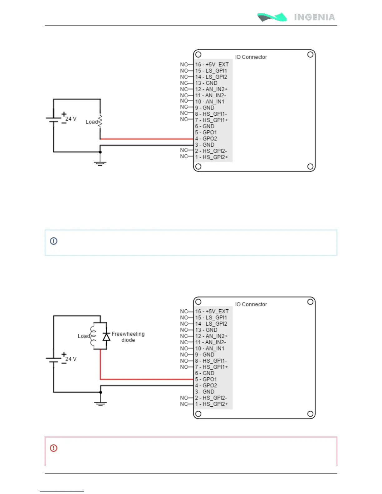 Next figure shows how to connect an inductive load to Pluto outputs (GPO1 can also be used).