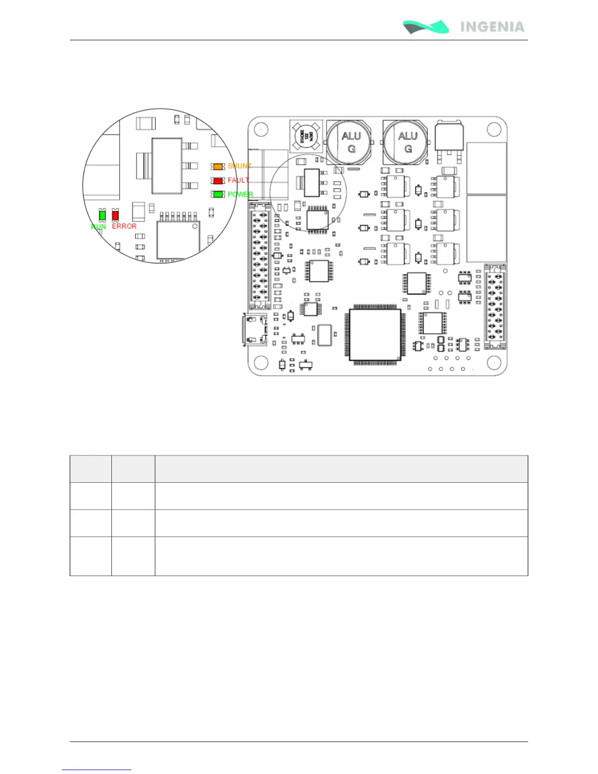 Pluto Servo Drive has 5 signalling LEDs near the CAN interface connector and USB connector.