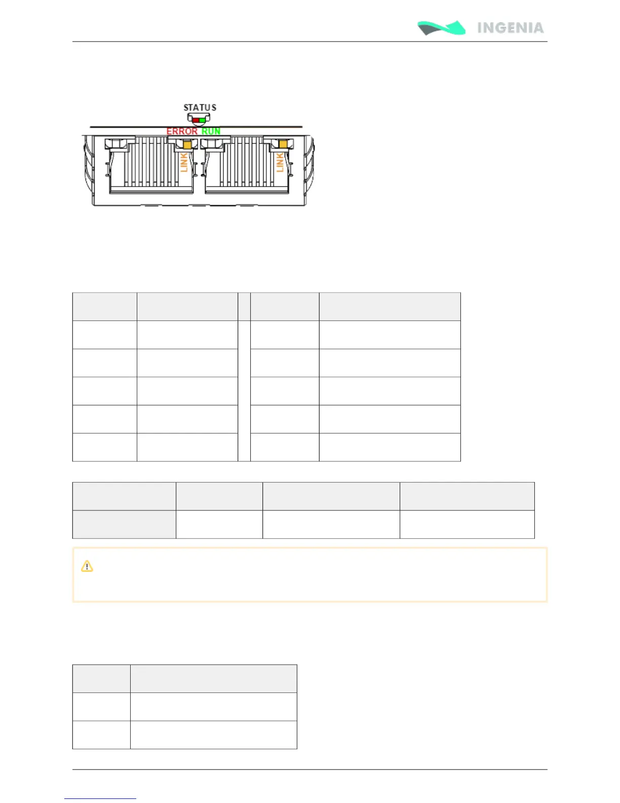 Next table shows the EtherCAT LEDs truth table, which indicates the status of the EtherCAT state machine.