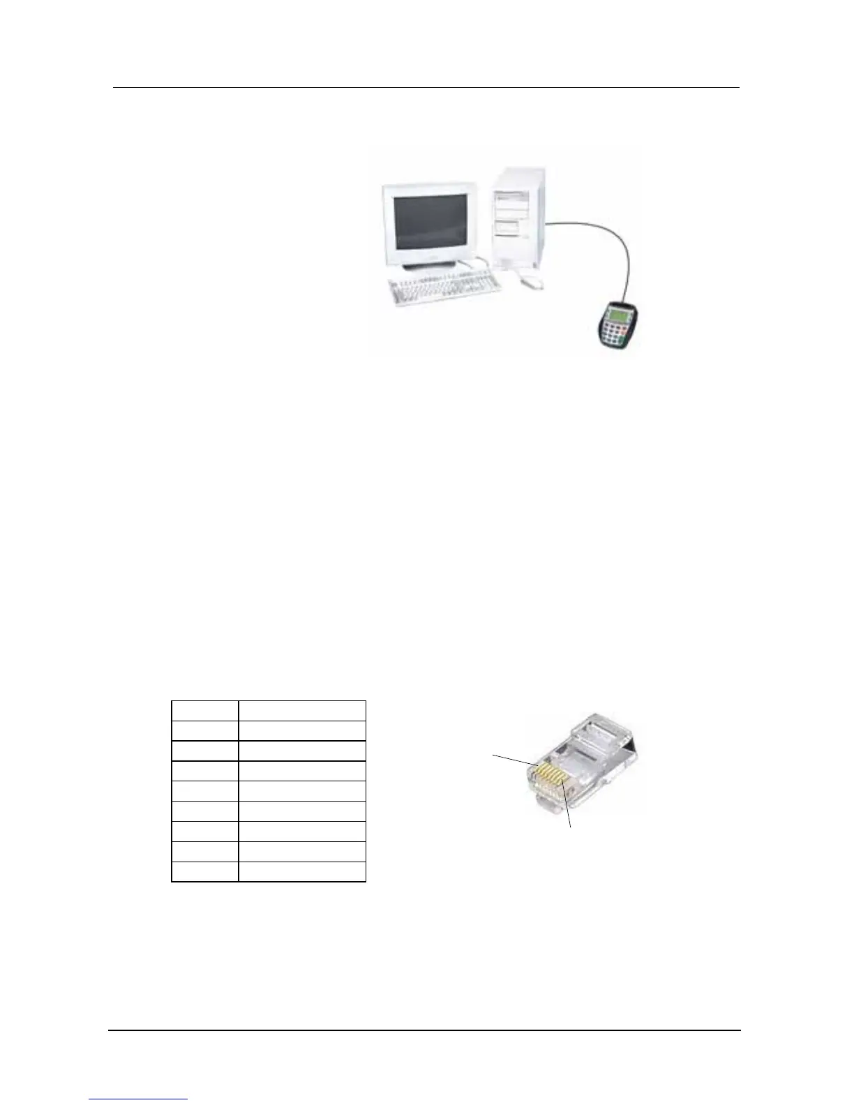 This connects both Power (DC only) and serial communication. The pin out is; -