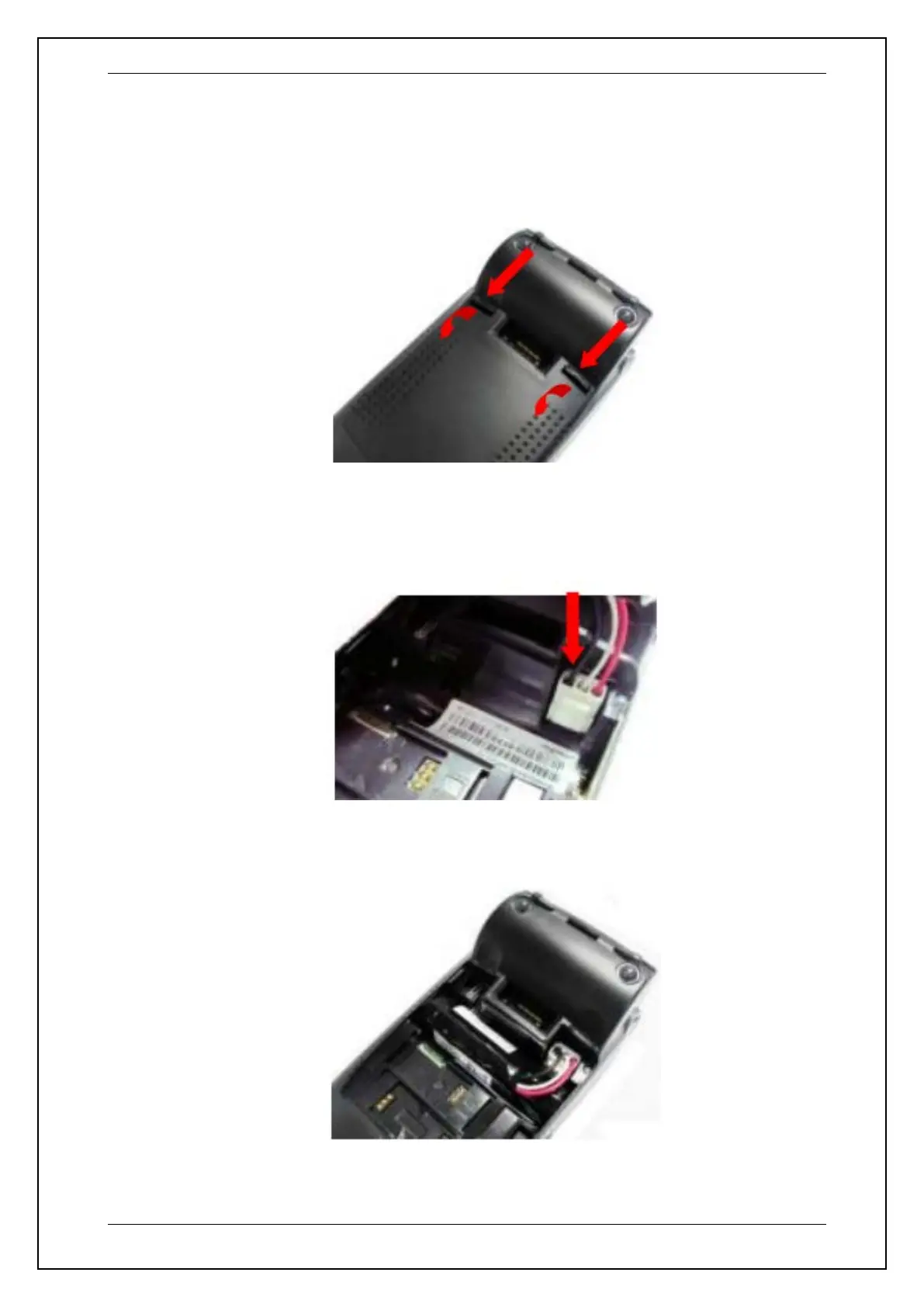 • Plug the battery pack connector into the socket, making sure it clicks