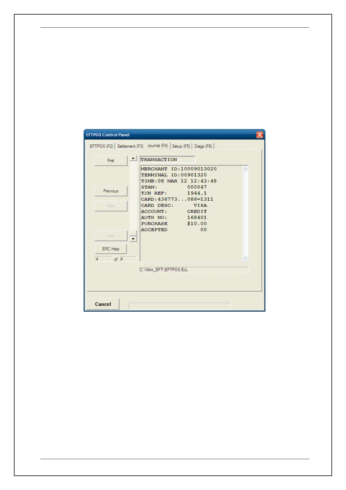 transactions. To view the previous, first, last or next transaction journal press the