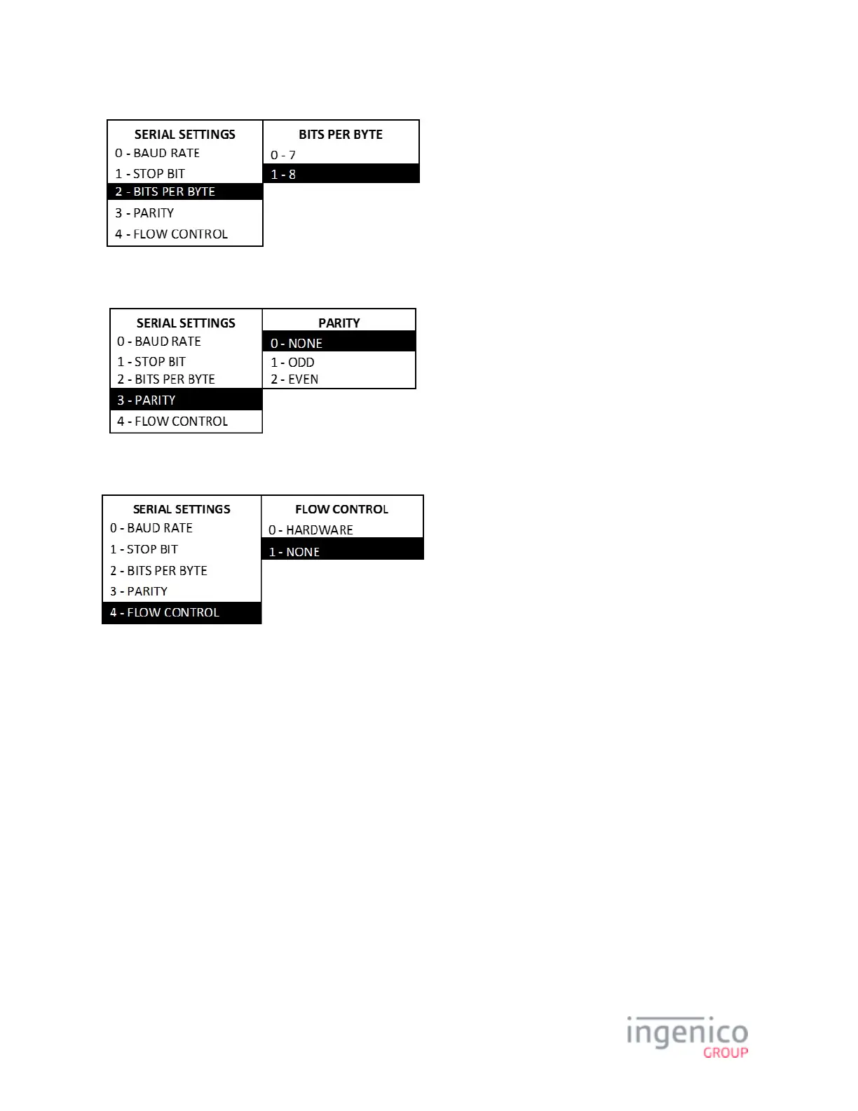 To change flow control, from the SERIAL SETTINGS menu proceed as follows: