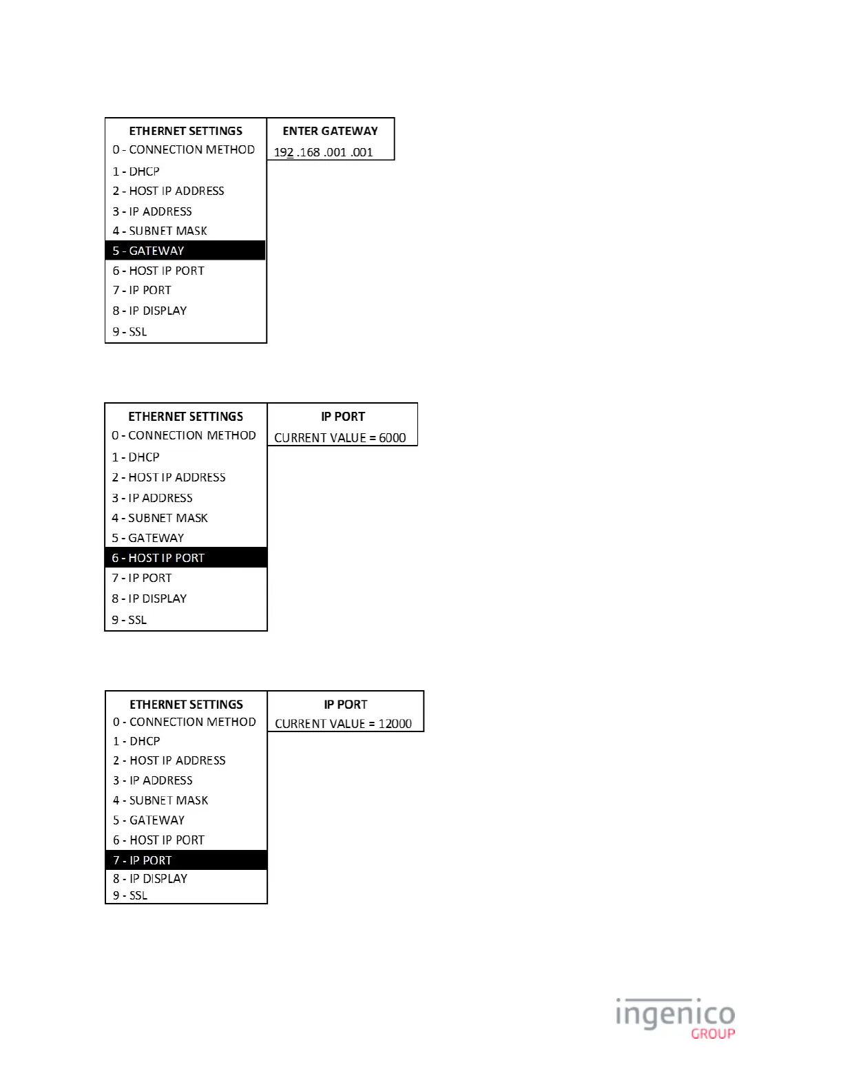 To set or change the IP port, proceed as follows from the Ethernet Settings menu: