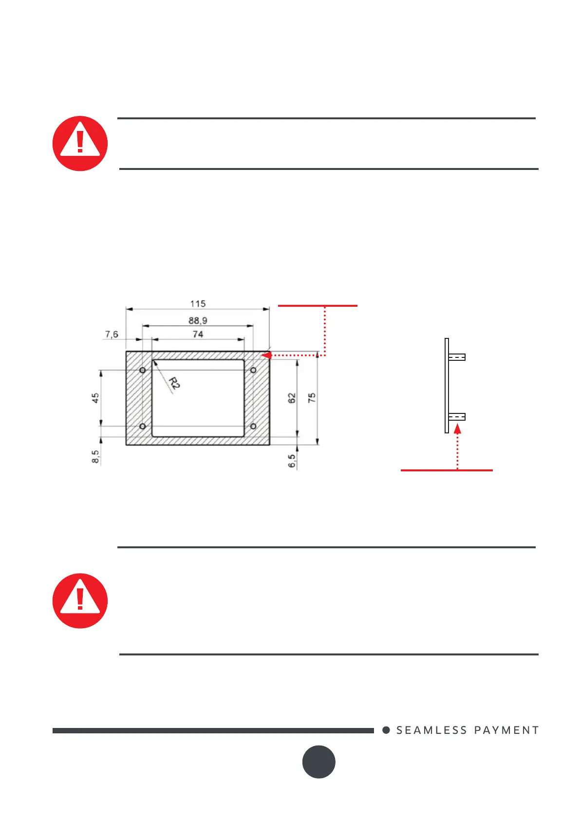 It is important that the device footprint surface on the kiosk must be at and cleared