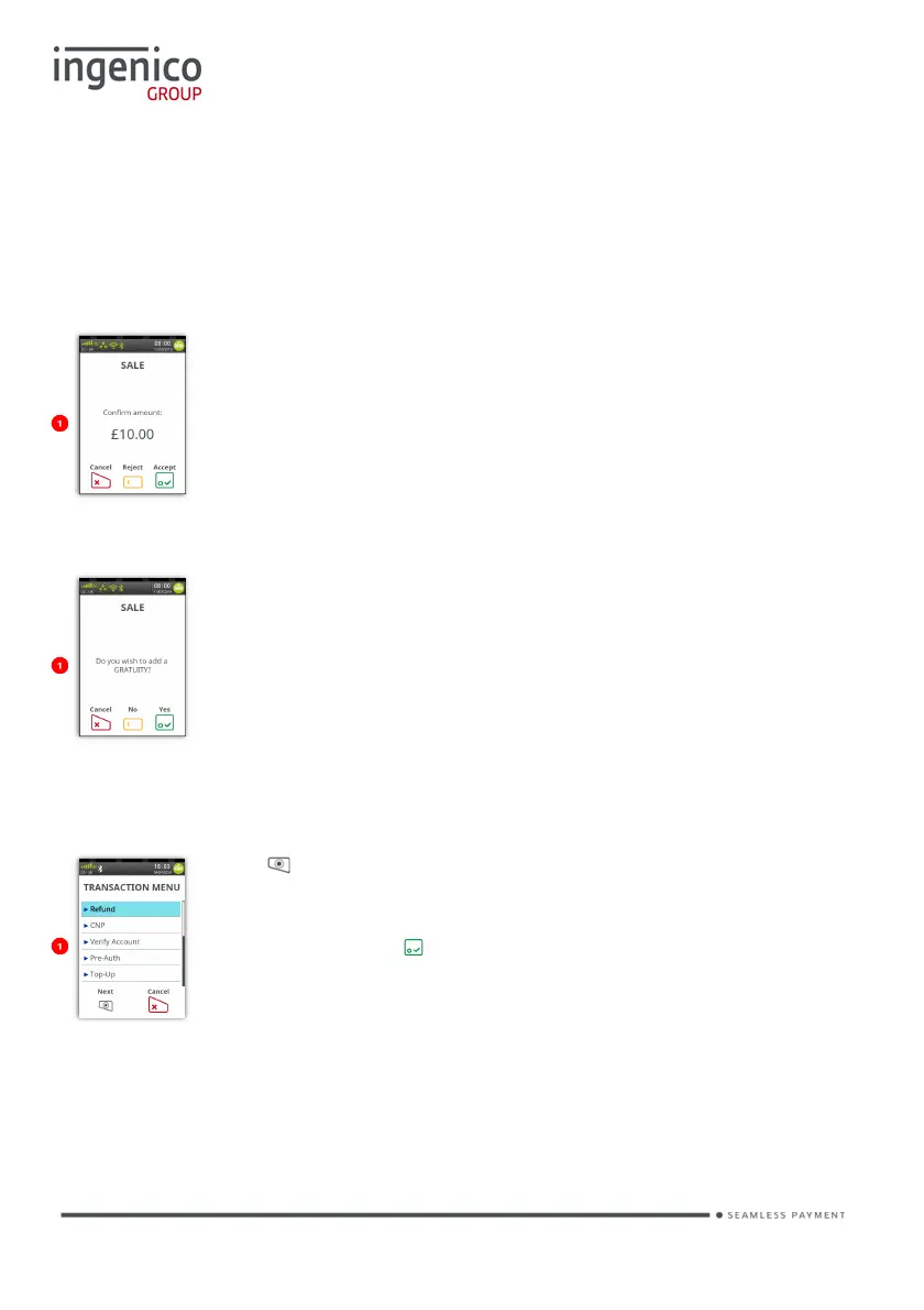 Press at the ‘Idle Screen’ to display the ‘Transaction