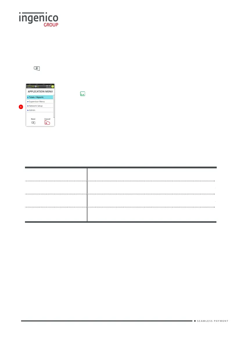 The ‘Application Menu’ is where the terminal sub menus are controlled from.