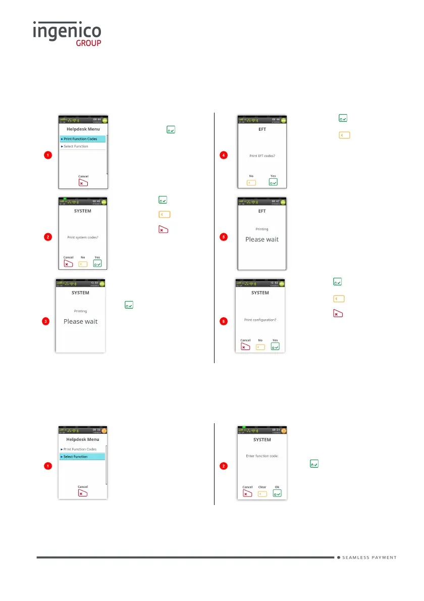 Ingenico Move 5000 - Helpdesk Menu: Print Function Codes; Helpdesk Menu: Select Function