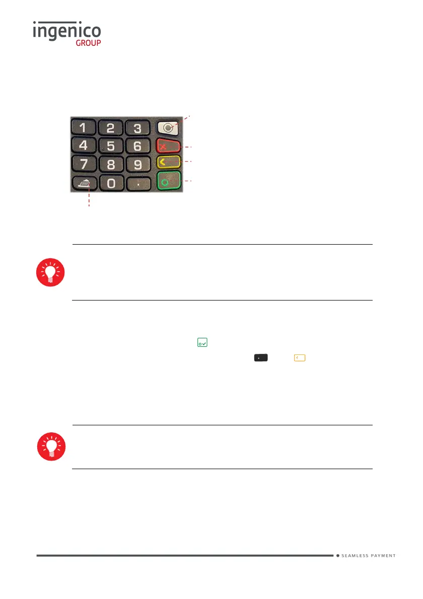 • To switch OFF the terminal press and hold and simultaneously for 1
